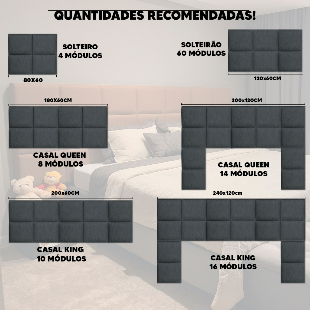 Cabeceira para Cama Casal Box Placa 40×30 Peças Autocolante Modulada Estofada Casal Queen King Size