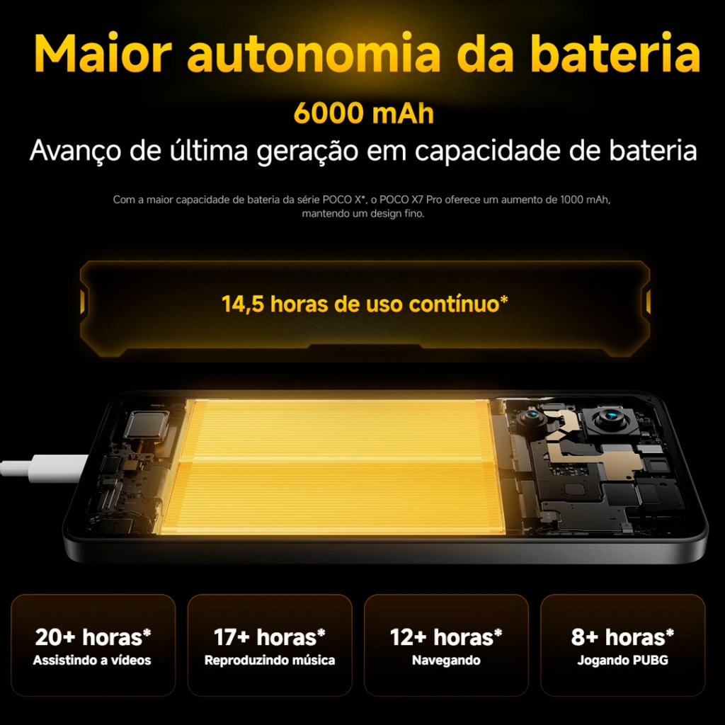 A bateria é um dos maiores diferenciais do Celular Xiaomi Poco X7 Pro 5G.