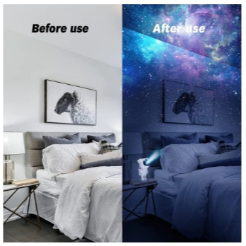 A Luminária Projetor Astronauta é um dispositivo moderno que projeta estrelas, nebulosas e efeitos luminosos em RGB diretamente no teto ou paredes, proporcionando uma sensação mágica de estar olhando para um céu estrelado. Com seu design criativo inspirado em um astronauta, ela une decoração, iluminação e tecnologia em um único produto.