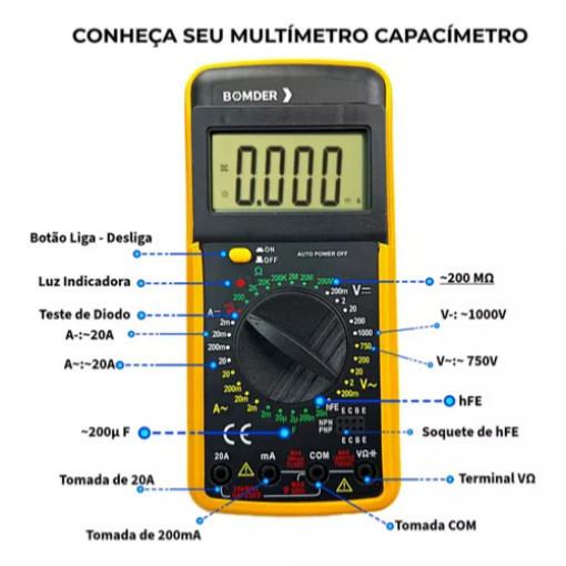 Multímetro Com Capacímetro Bip Original Digital Profissional BOM-6007